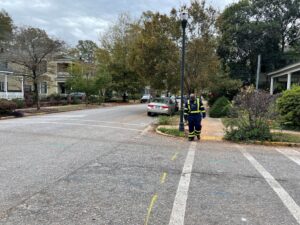 Department crews were in Elmwood Park on Friday November 17, 2023 to assess gas lines in the neighborhood for any detectable leaks. It came just days after the Columbia-Richland Fire Department issued a ‘Stop Work’ order on the Lumos company and its subcontractors for all projects they have planned in the city.