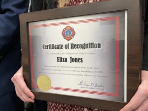 On February 25 Chief Jenkins and members of Ladder 9 and Engine 2-1st Shift attended the meeting of the Richland One School Board to present the students with certificates of recognition from the department. Roth, Jones and Rogers were also recognized by the school district for their actions.